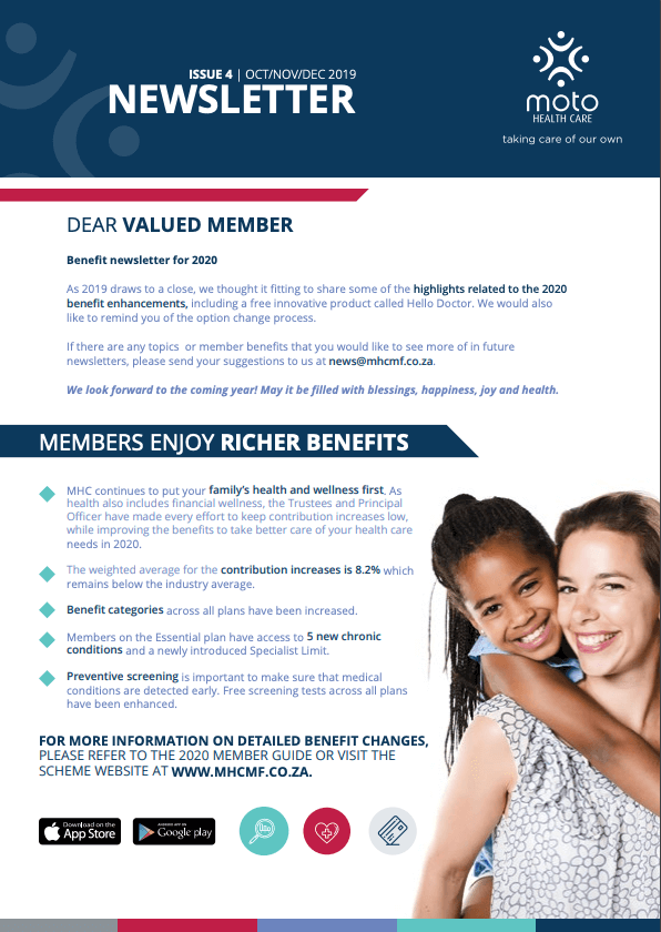 Communication Member & Employer Newsletter Newsletter | Issue 4 2025 11th Nov 2025 Read More Newsletter | Issue 3 2025 17th Sep 2025 Read More Newsletter | Issue 2 2025 17th Jun 2025 Read More Newsletter | Issue 1 2025 19th Mar 2025 Read More Newsletter | Issue 4 2024 25th Nov 2024 Read More Newsletter | Issue 3 2024 10th Sep 2024 Read More Newsletter | Issue 2 2024 12th Jun 2024 Read More Newsletter | Issue 1 2024 20th Mar 2024 Read More Newsletter | Issue 4 2023 22nd Nov 2023 Read More Newsletter | Issue 3 2023 27th Sep 2023 Read More 1 2 Next » Newsflashes Fraud Awareness Week 14th Nov 2023 Read More Have you heard about the Monkeypox Virus? 28th Jul 2022 Read More COVID-19 Vaccination Roll-out Plan 19th Apr 2021 Read More Introducing the PPN Self-help Solution 4th Jan 2021 Read More Coronavirus FAQ 29th Jul 2020 Read More Member Q & A – Coronavirus 19th Mar 2020 Read More Coronavirus News Flash 5th Feb 2020 Read More Other Oral Health Month Alert 8th Sep 2025 Read More Effects of Tobacco on Dental Health 5th May 2025 Read More Taurodontism 3rd Mar 2025 Read More Human Metapneumovirus (HMPV) 14th Jan 2025 Read More Signing of the NHI Act 21st May 2024 Read More Sedation in Dentistry 6th May 2024 Read More Common Dental Emergencies 8th Apr 2024 Read More Dental Deciduous Teeth & Timelines 5th Mar 2024 Read More Intrinsic and Extrinsic Teeth Stains 15th Aug 2023 Read More What is important when choosing a medical scheme for you and your family – or even for your employees? 8th Jul 2020 Read More 1 2 Next » Animation Moto Health Animation Zulu 25th Jan 2022 Read More MotoHealth Animation 25th Jan 2022 Read More